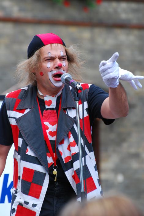 Kell hozzá - naná! - program. Rendes jelenet, maga a bohócszám. Zene, énektudás, tánc, netán társ is, csapat is, miegyéb.